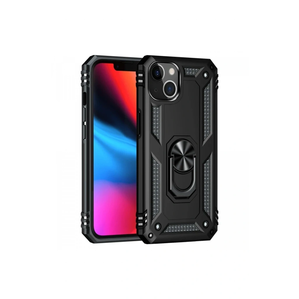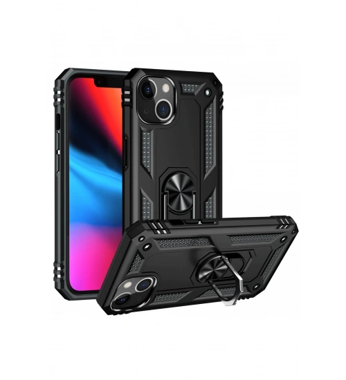 Newface iPhone 13 Kılıf Sofya Yüzüklü Silikon Kapak - Siyah