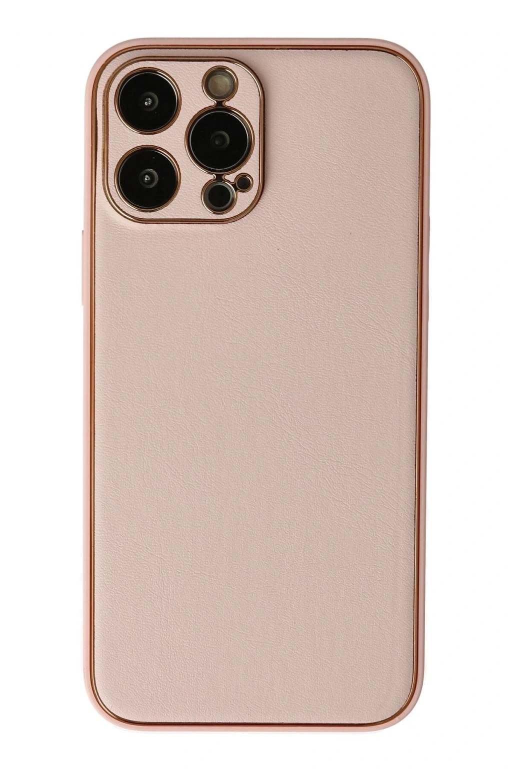 Newface iPhone 13 Pro Kılıf Coco Deri Silikon Kapak - Pudra