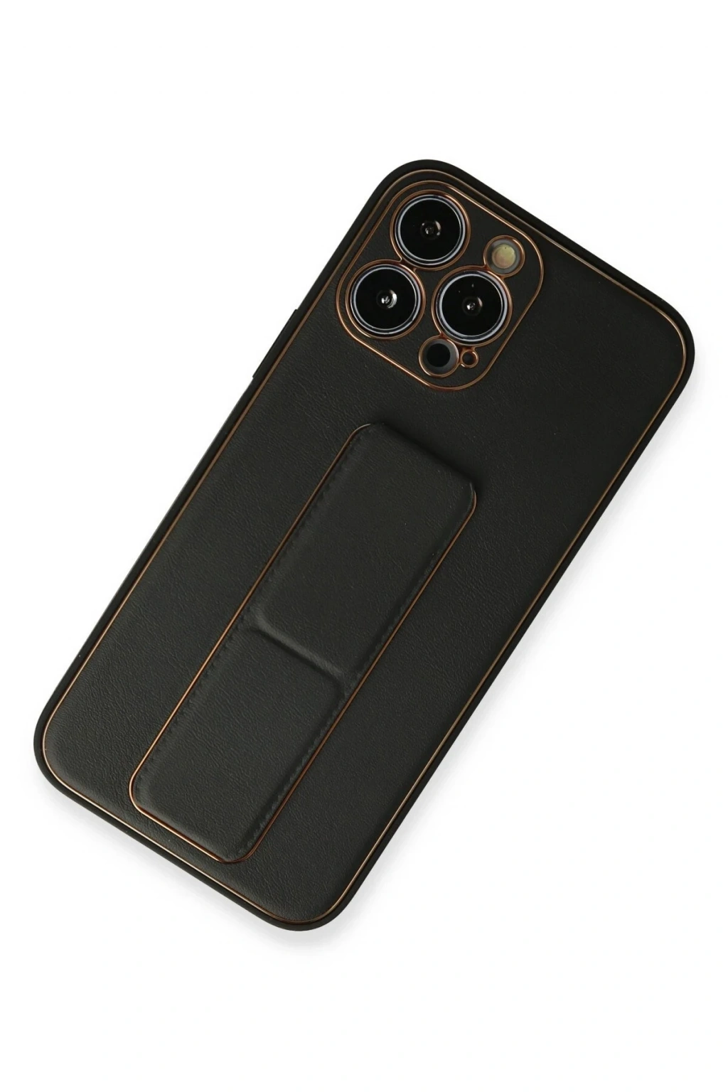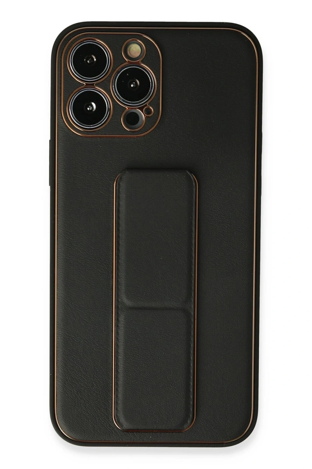 Newface iPhone 13 Pro Kılıf Coco Deri Standlı Kapak - Siyah