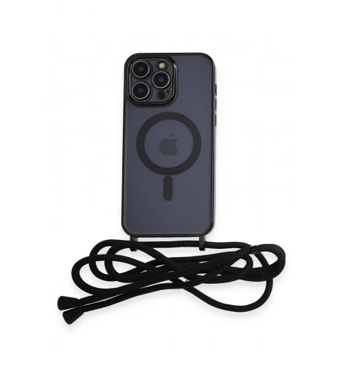 Newface iPhone 13 Pro Kılıf Divo Lazer Askılı Magsafe Kapak - Siyah