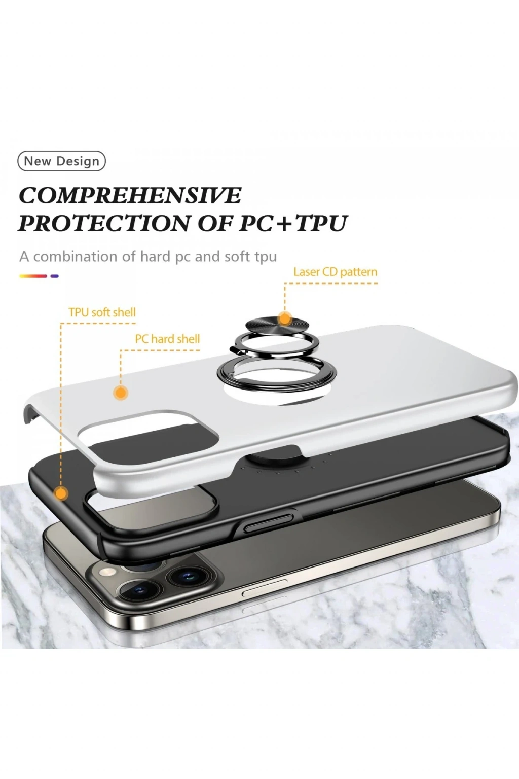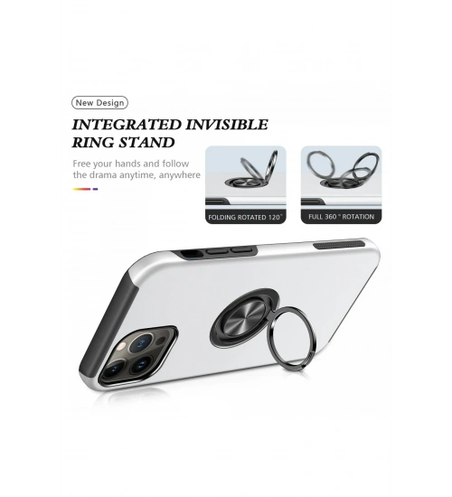 Newface iPhone 13 Pro Kılıf Elit Yüzüklü Kapak - Gümüş