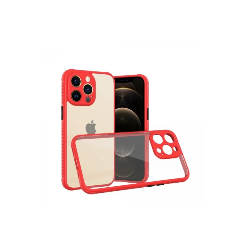Newface iPhone 13 Pro Kılıf Miami Şeffaf Silikon - Kırmızı