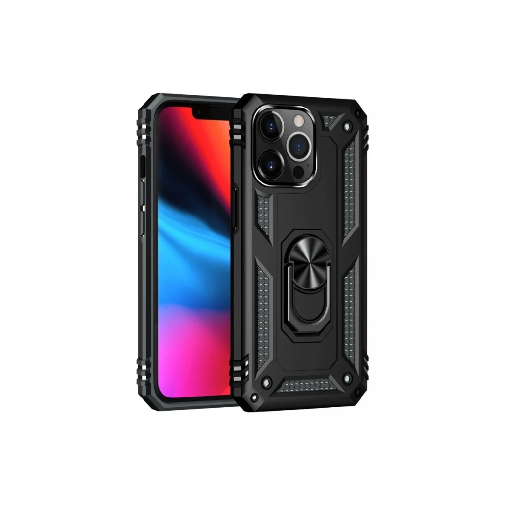 Newface iPhone 13 Pro Kılıf Sofya Yüzüklü Silikon Kapak - Siyah