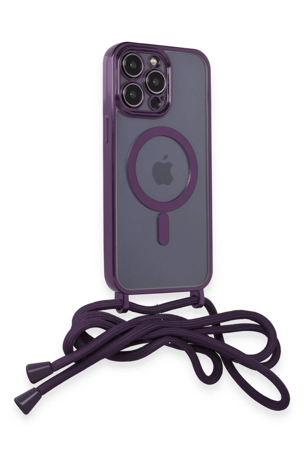 Newface iPhone 13 Pro Max Kılıf Divo Lazer Askılı Magsafe Kapak - Derin Mor