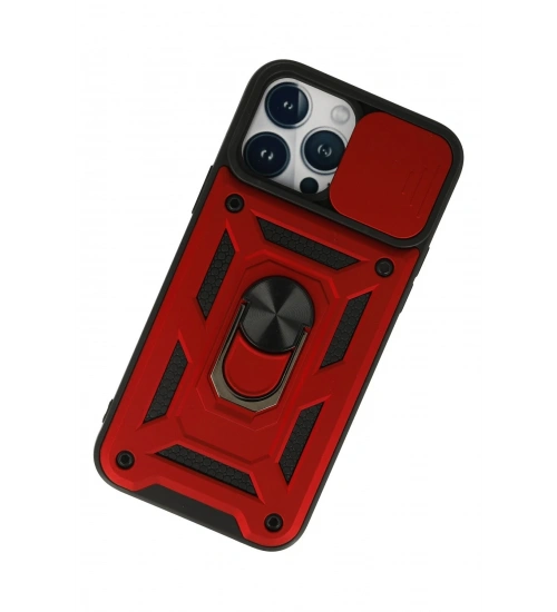 Newface iPhone 13 Pro Max Kılıf Pars Lens Yüzüklü Silikon - Kırmızı