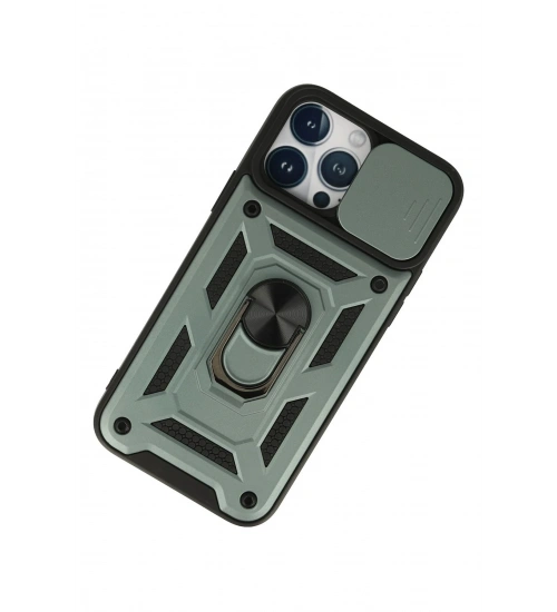 Newface iPhone 13 Pro Max Kılıf Pars Lens Yüzüklü Silikon - Yeşil