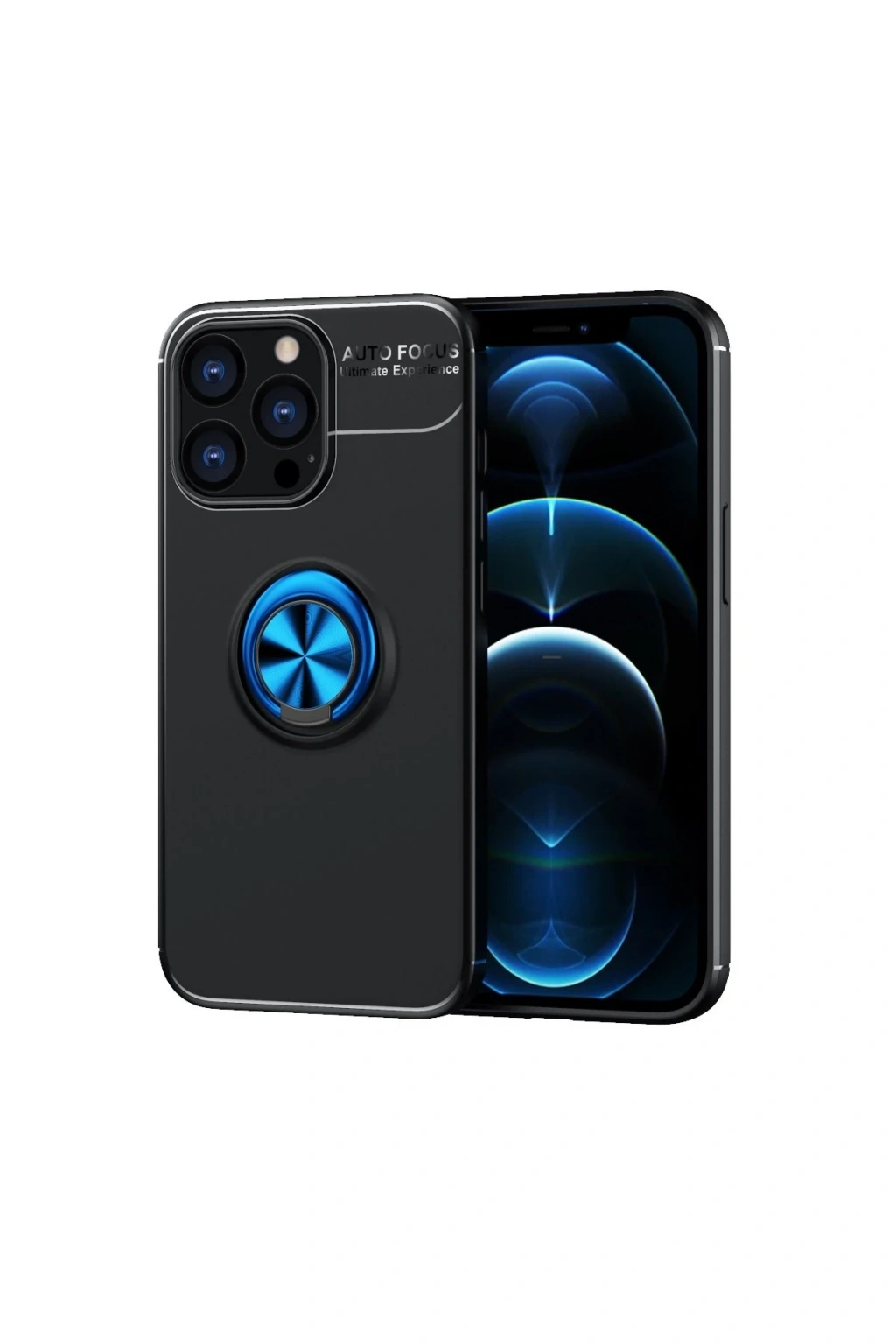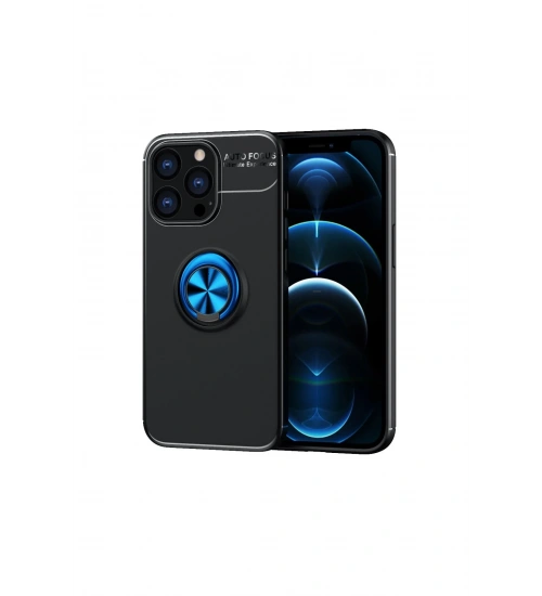 Newface iPhone 13 Pro Max Kılıf Range Yüzüklü Silikon - Siyah-Mavi