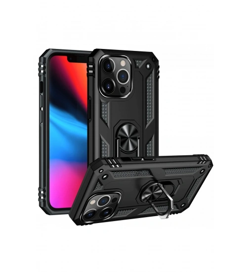Newface iPhone 13 Pro Max Kılıf Sofya Yüzüklü Silikon Kapak - Siyah