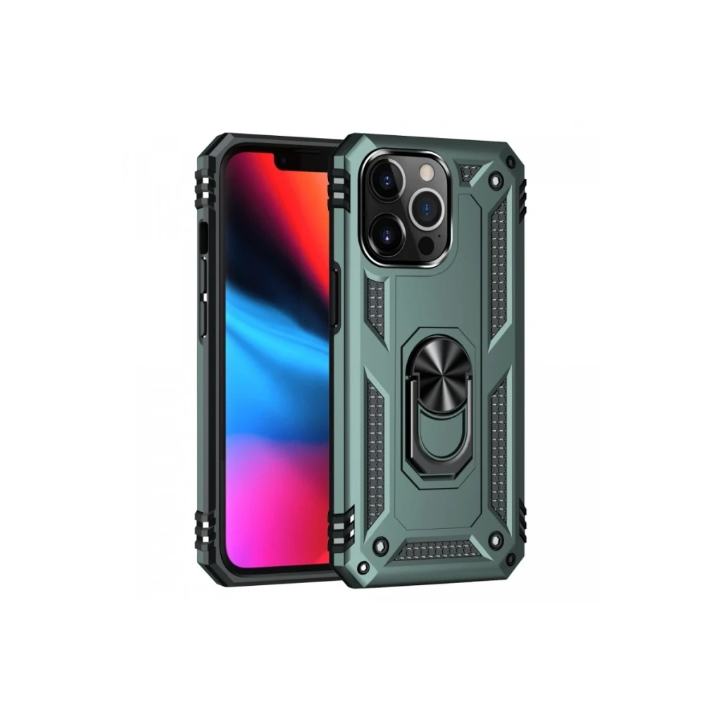 Newface iPhone 13 Pro Max Kılıf Sofya Yüzüklü Silikon Kapak - Yeşil