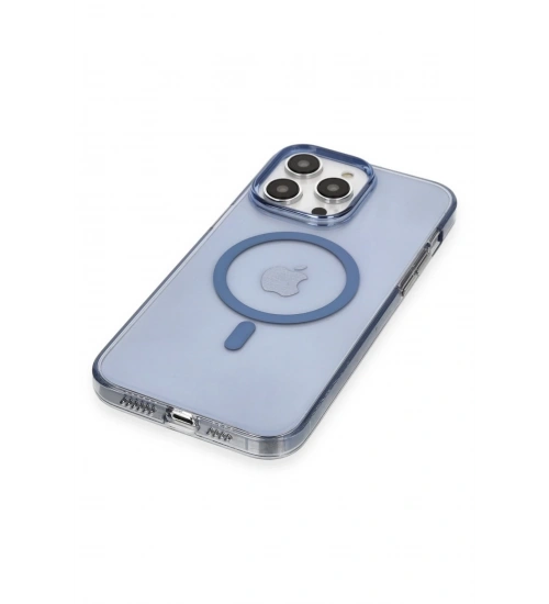 Newface iPhone 13 Pro Max Kılıf Tron Şeffaf Magsafe Kapak - Mavi