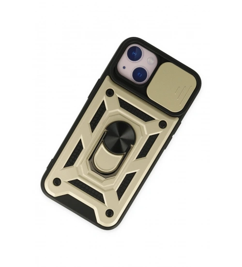 Newface iPhone 14 Kılıf Pars Lens Yüzüklü Silikon - Gold
