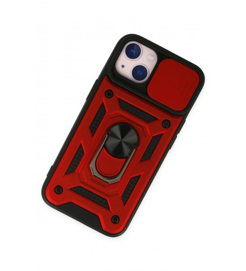 Newface iPhone 14 Kılıf Pars Lens Yüzüklü Silikon - Kırmızı