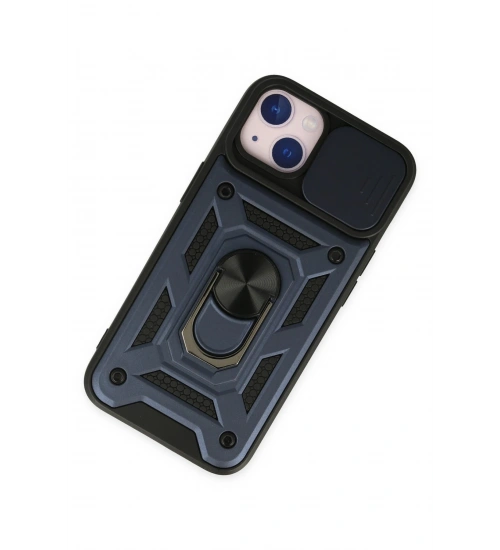 Newface iPhone 14 Kılıf Pars Lens Yüzüklü Silikon - Lacivert