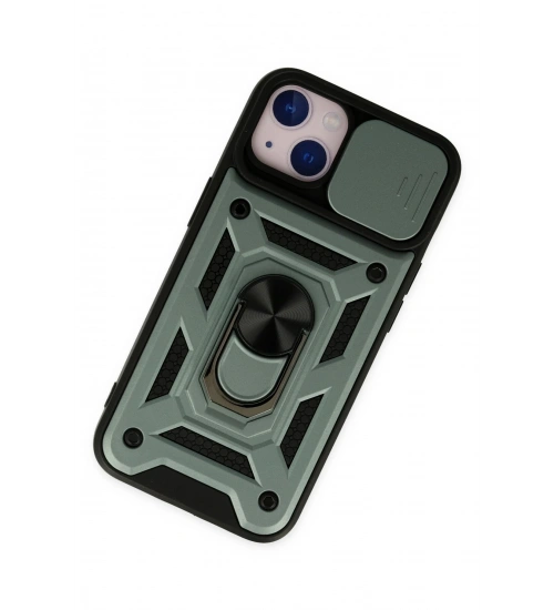 Newface iPhone 14 Kılıf Pars Lens Yüzüklü Silikon - Yeşil