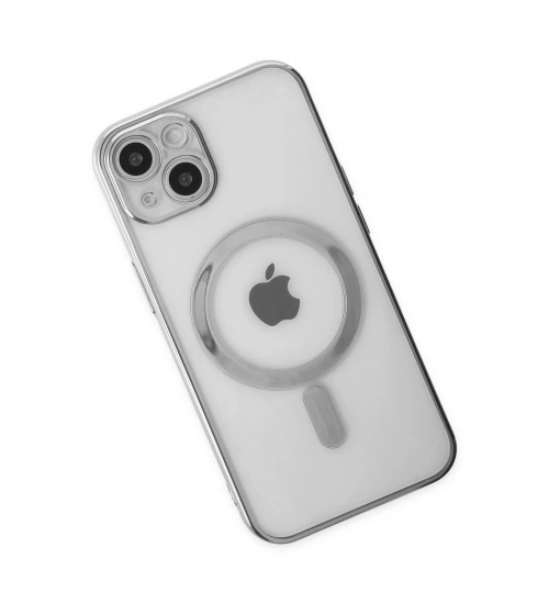 Newface iPhone 14 Plus Kılıf Magneticsafe Lazer Silikon - Gümüş