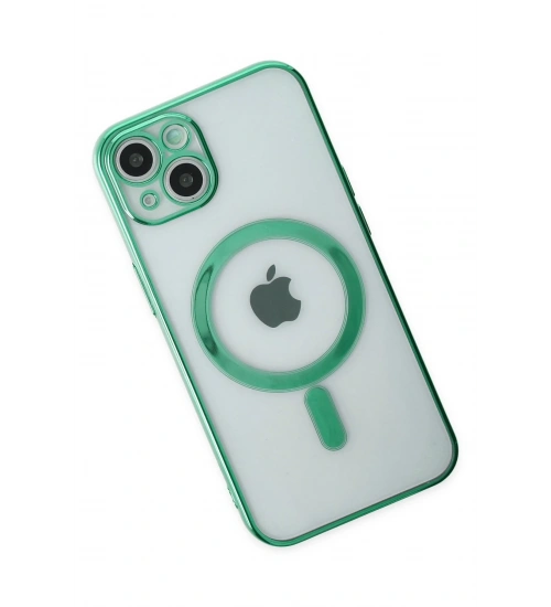Newface iPhone 14 Plus Kılıf Magneticsafe Lazer Silikon - Haki Yeşil