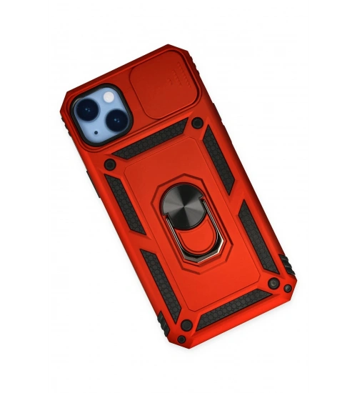 Newface iPhone 14 Plus Kılıf Pars Lens Yüzüklü Silikon - Kırmızı