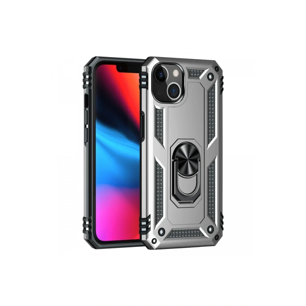Newface iPhone 14 Plus Kılıf Sofya Yüzüklü Silikon Kapak - Gümüş