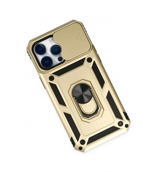 Newface iPhone 14 Pro Kılıf Pars Lens Yüzüklü Silikon - Gold