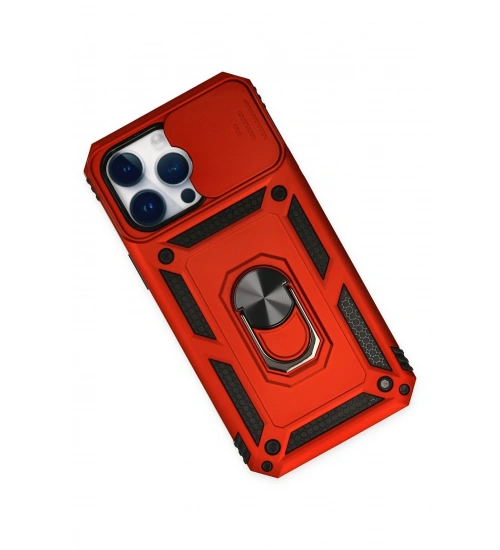 Newface iPhone 14 Pro Kılıf Pars Lens Yüzüklü Silikon - Kırmızı