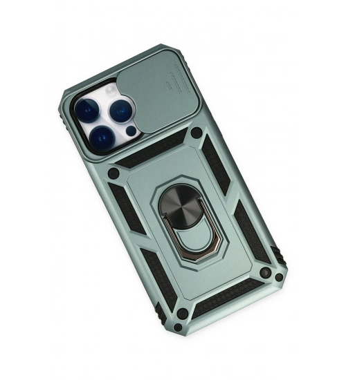 Newface iPhone 14 Pro Kılıf Pars Lens Yüzüklü Silikon - Yeşil