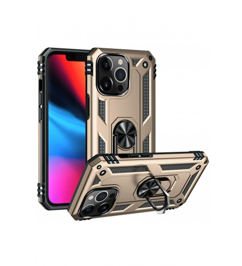 Newface iPhone 14 Pro Kılıf Sofya Yüzüklü Silikon Kapak - Gold