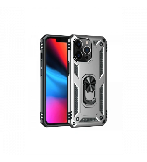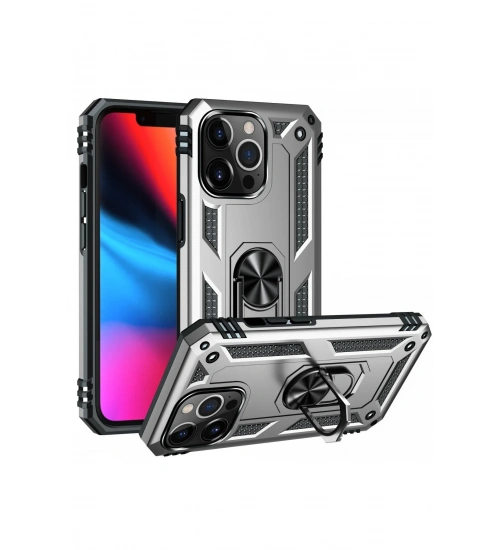 Newface iPhone 14 Pro Kılıf Sofya Yüzüklü Silikon Kapak - Gümüş