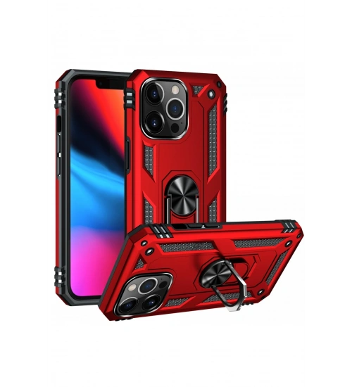 Newface iPhone 14 Pro Kılıf Sofya Yüzüklü Silikon Kapak - Kırmızı