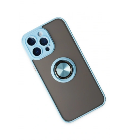 Newface iPhone 14 Pro Max Kılıf Montreal Yüzüklü Silikon Kapak - Buz Mavi
