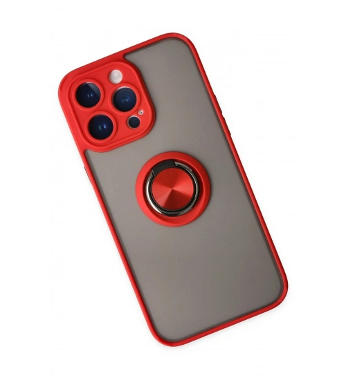 Newface iPhone 14 Pro Max Kılıf Montreal Yüzüklü Silikon Kapak - Kırmızı