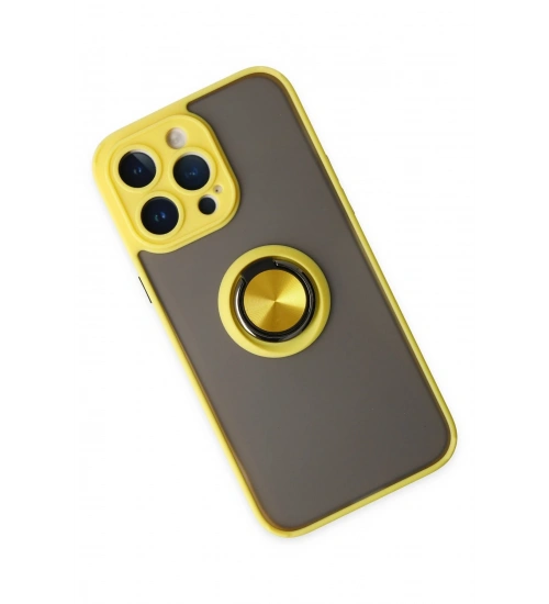 Newface iPhone 14 Pro Max Kılıf Montreal Yüzüklü Silikon Kapak - Sarı