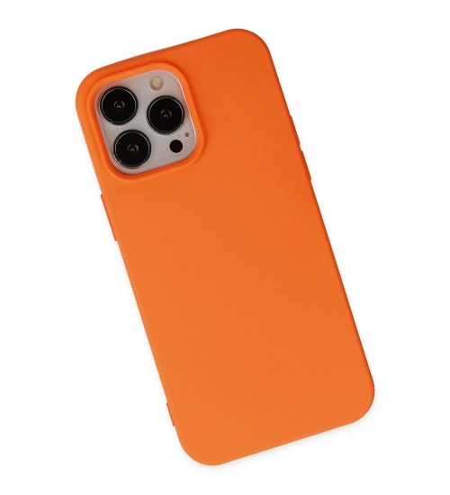 Newface iPhone 14 Pro Max Kılıf Nano içi Kadife Silikon - Turuncu