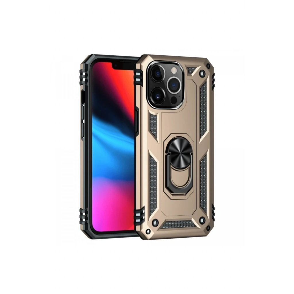 Newface iPhone 14 Pro Max Kılıf Sofya Yüzüklü Silikon Kapak - Gold