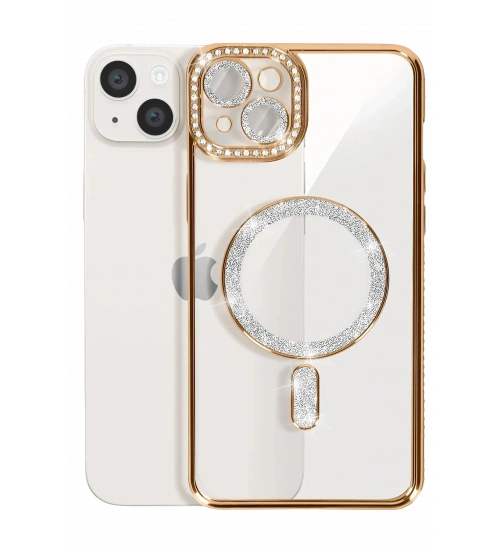 Newface iPhone 15 Kılıf Joke Simli Magneticsafe Kılıf - Gold