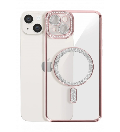 Newface iPhone 15 Kılıf Joke Simli Magneticsafe Kılıf - Pembe
