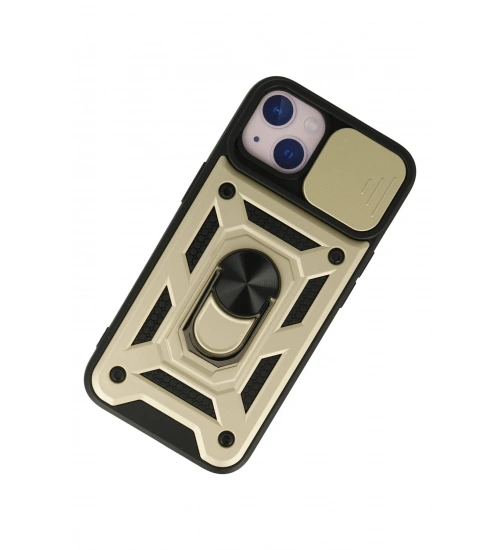 Newface iPhone 15 Kılıf Pars Lens Yüzüklü Silikon - Gold
