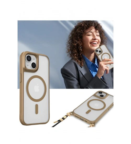Newface iPhone 15 Plus Kılıf Enka Magsafe Silikon Kılıf - Desert