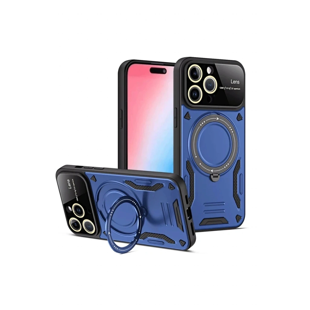 Newface iPhone 15 Pro Joy Lens Standlı Kapak - Lacivert