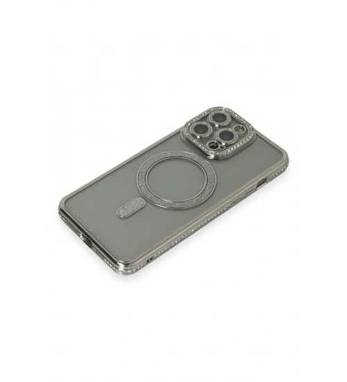Newface iPhone 15 Pro Kılıf Joke Simli Magneticsafe Kılıf - Gri
