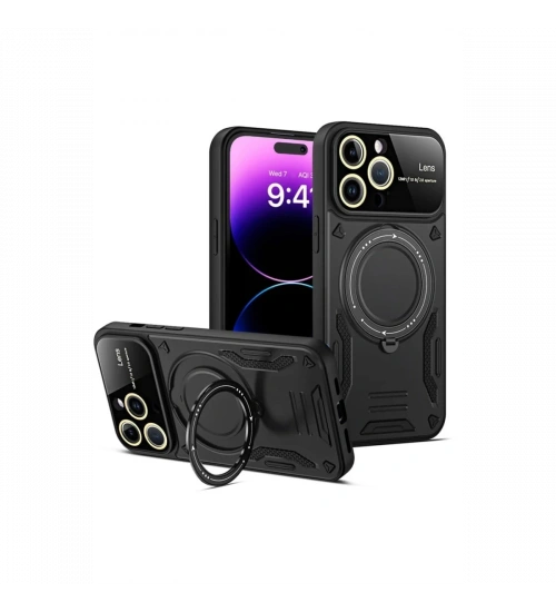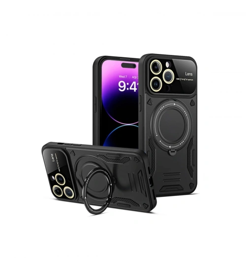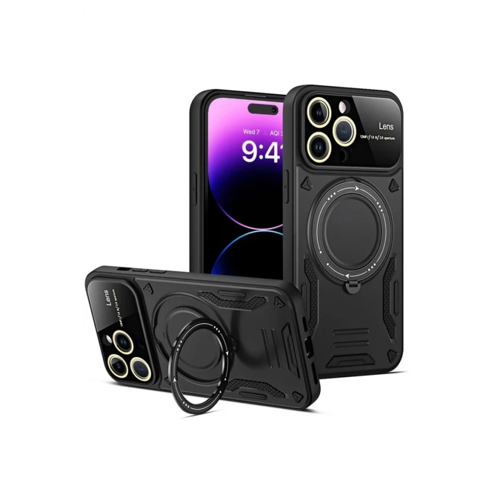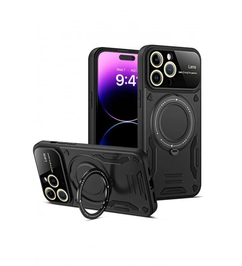 Newface iPhone 15 Pro Kılıf Joy Lens Standlı Kapak - Siyah