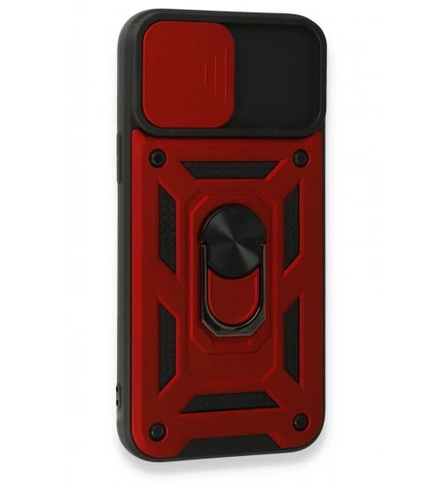 Newface iPhone 15 Pro Kılıf Pars Lens Yüzüklü Silikon - Kırmızı