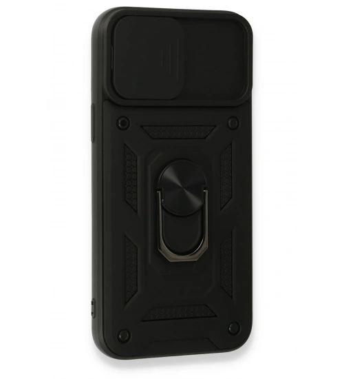 Newface iPhone 15 Pro Kılıf Pars Lens Yüzüklü Silikon - Siyah