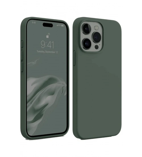 Newface iPhone 15 Pro Max Kılıf First Silikon - Koyu Yeşil