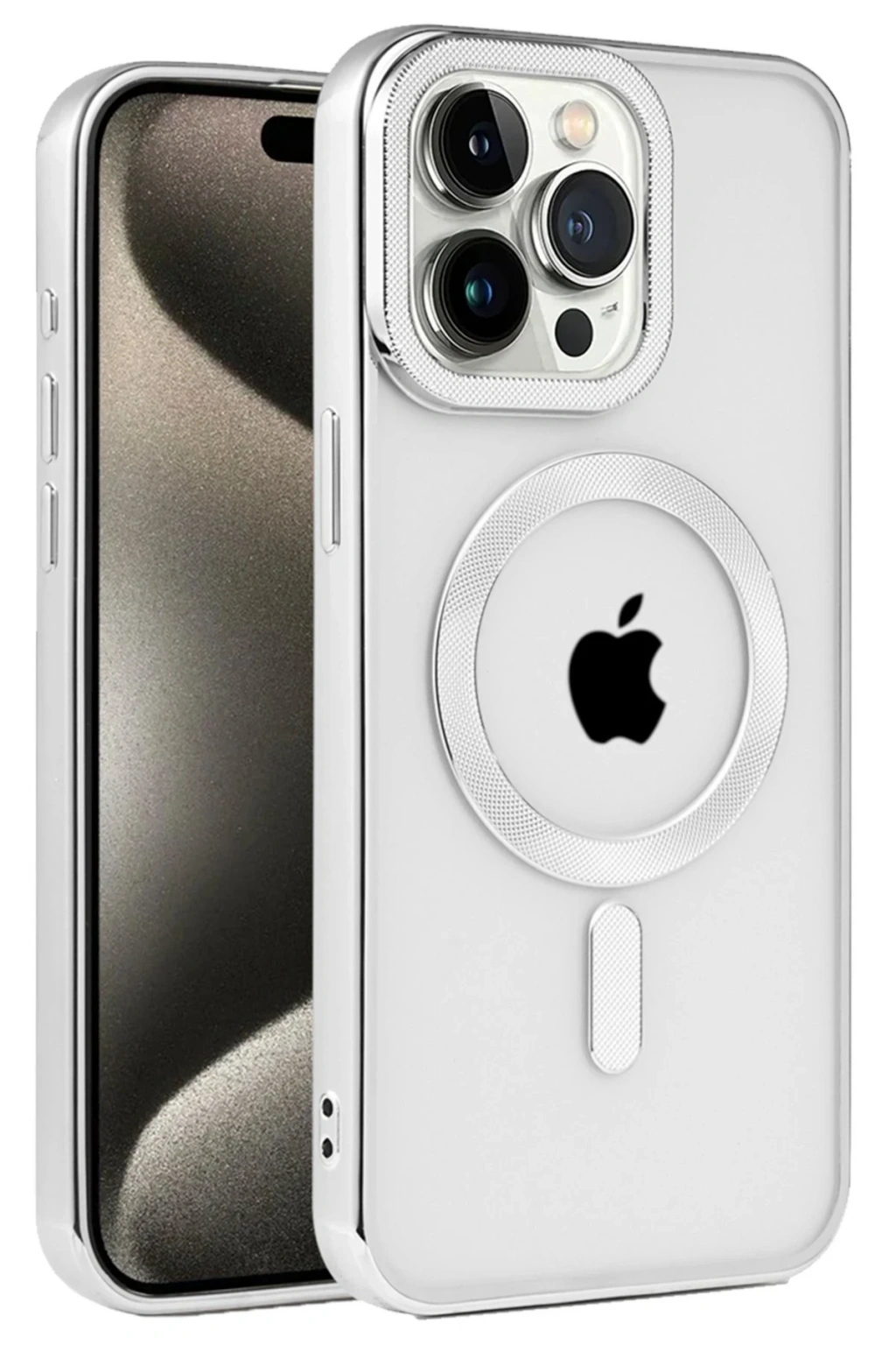 Newface iPhone 15 Pro Max Kılıf Kronos Magsafe Kapak - Gümüş