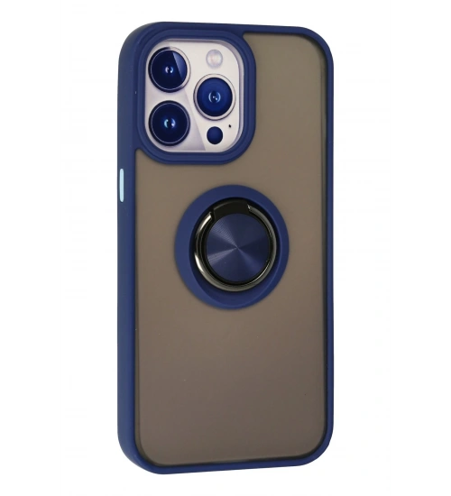 Newface iPhone 15 Pro Max Kılıf Montreal Yüzüklü Silikon Kapak - Lacivert