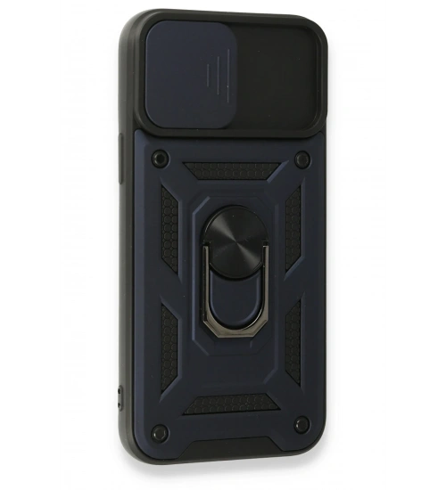 Newface iPhone 15 Pro Max Kılıf Pars Lens Yüzüklü Silikon - Lacivert