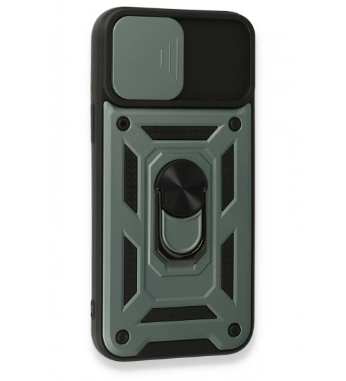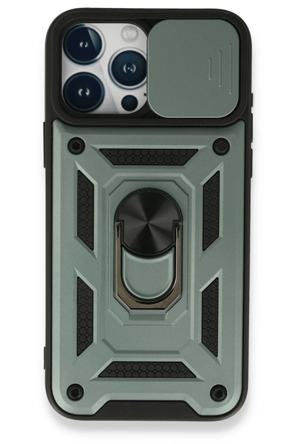 Newface iPhone 15 Pro Max Kılıf Pars Lens Yüzüklü Silikon - Yeşil