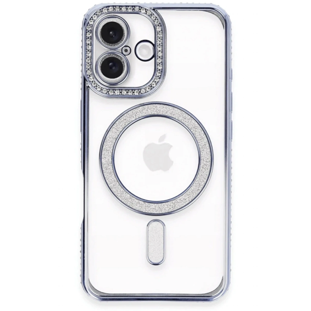 Newface iPhone 16 Plus Kılıf Joke Simli Magneticsafe Kılıf - Mavi