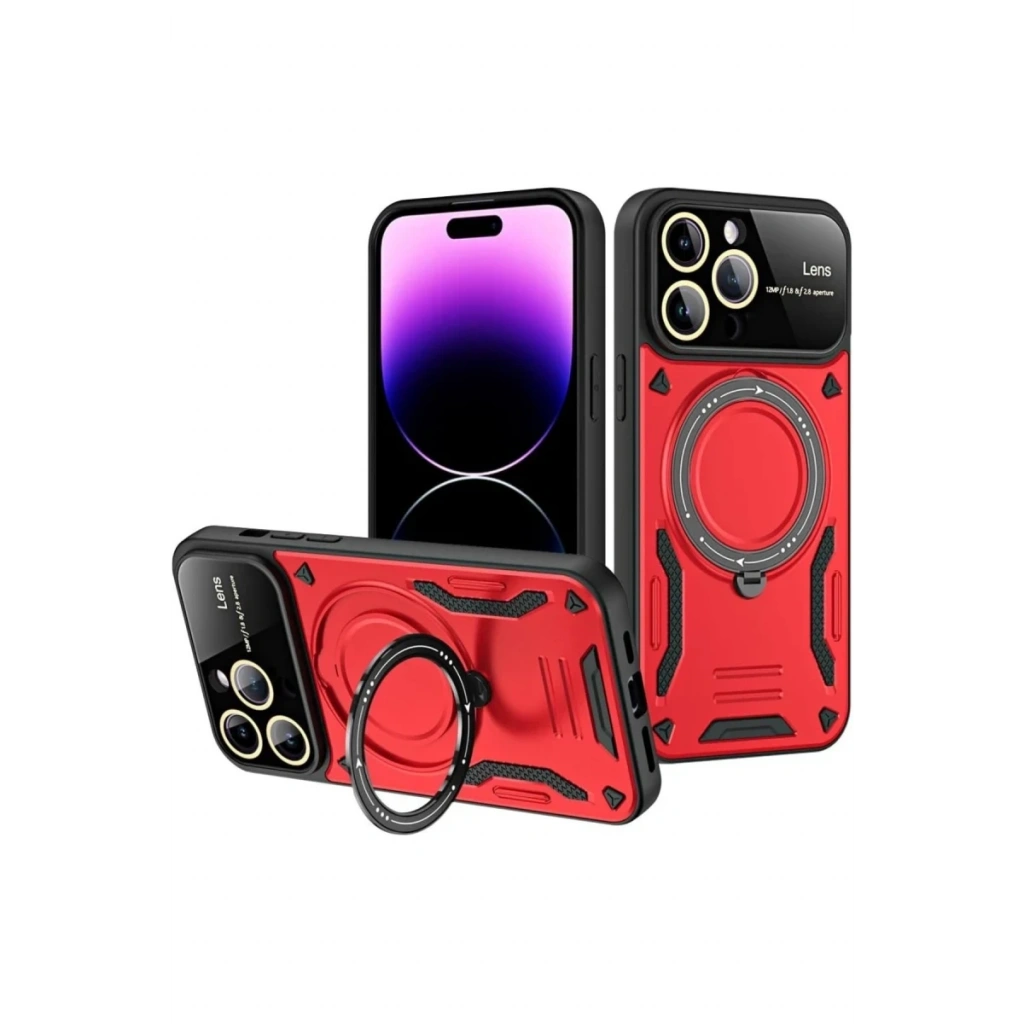 Newface iPhone 16 Pro Max Kılıf Joy Lens Standlı Kapak - Kırmızı