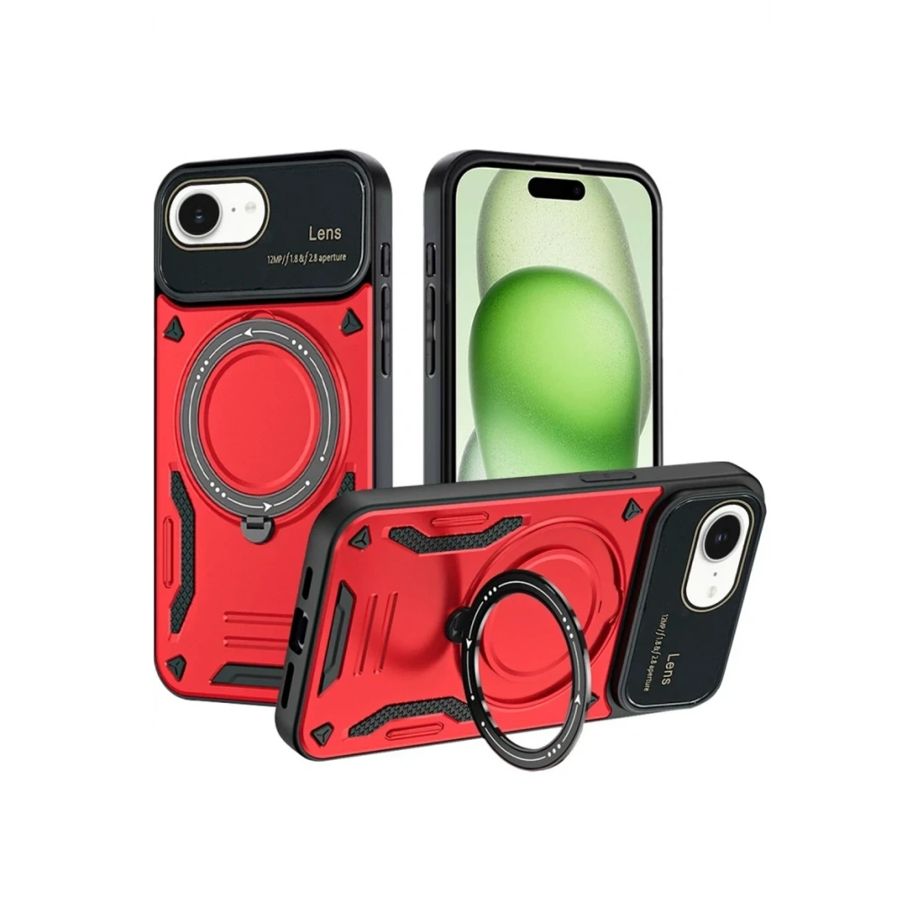 Newface iPhone 16E Kılıf Joy Lens Standlı Kapak - Kırmızı